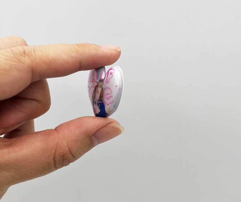 光を受けると立体感がより際立ち、色味もはっきりと見えるため、キャラクターやイラストの「かわいさ」をしっかり表現できます。写真や売り場でも目を引きやすく、物販用グッズや推し活アイテム、キッズ向けデザインとの相性が良いタイプです。ぷっくり感を強調したい場合や、華やかな印象に仕上げたい企画におすすめです。
